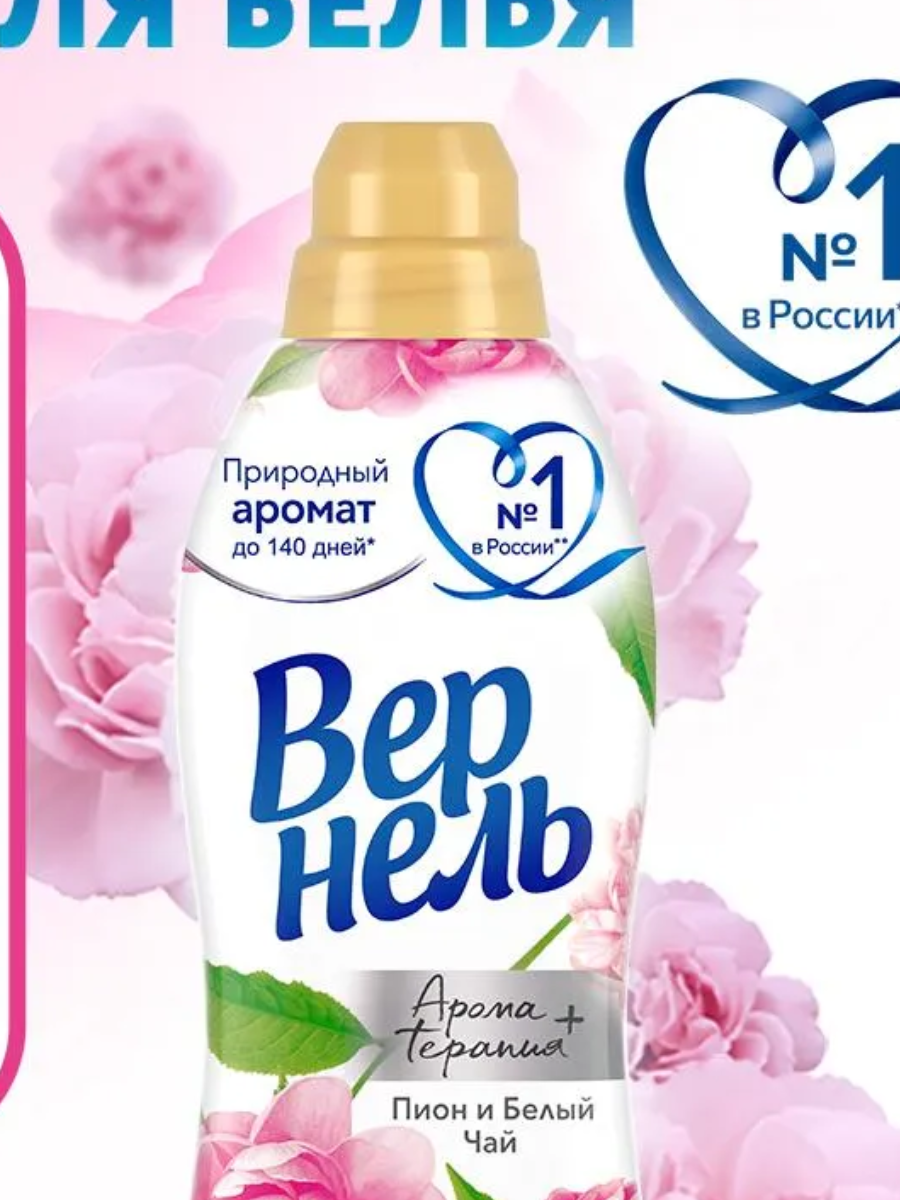 Концентрированный кондиционер для белья Вернель Ароматерапия+ Пион и Белый Чай 870 мл (34 стирки) подарит Вашему белью нежный, расслабляющий аромат, вдохновленный самой природой. Благодаря специальным аромакапсулам кондиционер для стирки Вернель позволит наслаждаться интенсивным ароматом до 140 дней.